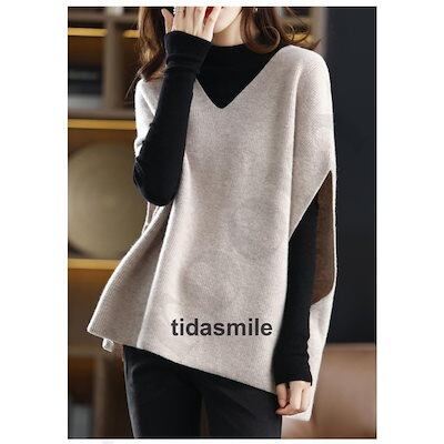 秋服 体型カバー 着痩せ 通勤 ゆったり カジュアル韓国風 ニットベスト Vネック 無地 ノースリープ ベストセーター 春秋冬 40代 レディース ニットベスト