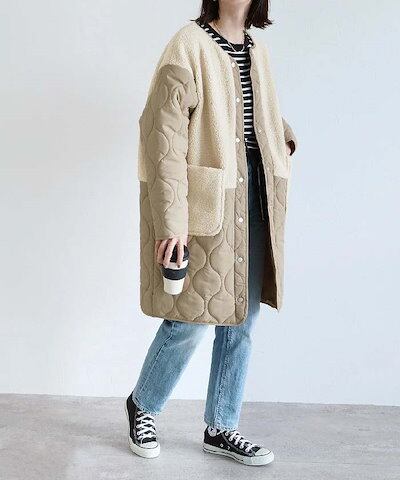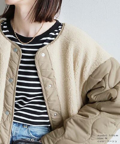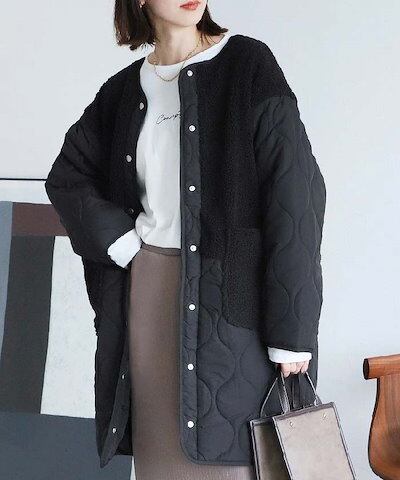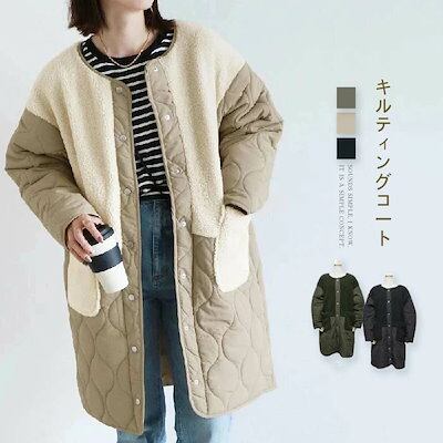 コート レディース 秋冬 ボア キルティング 切り替え ノーカラー ボア コート キルティング コート スエードコート ボア アウター ふわふわ もこもこ 冬 秋 ビッグシルエット オーバーサイズ 大