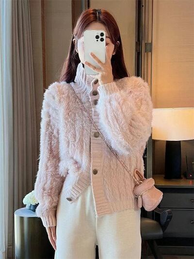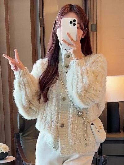 カーディガン レディース シャギーニット ニットカーディガン ショート丈 ハイネック コート アウター 秋冬 トップス ニット ニットトップス 羽織る コーディガン ふわふわ もこもこ ゆったり 体