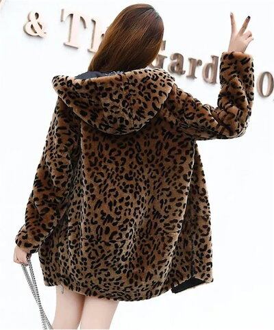 韓国ファッション レディースアウター もこもこアウター 可愛いアウター 中長セクション ヒョウコート フェイクファー ウインドブレーカー