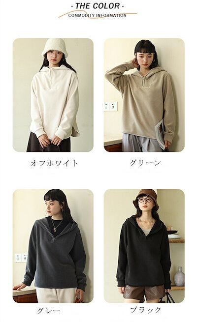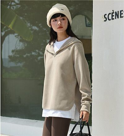 ボア パーカー レディース 秋冬 ボアパーカー 厚手 プルオーバーパーカー プルオーバー トップス 無地 フード付き ハーフジップ ゆったり サイドスリット 柔らか もこもこ ふわふわ きれいめ 防寒