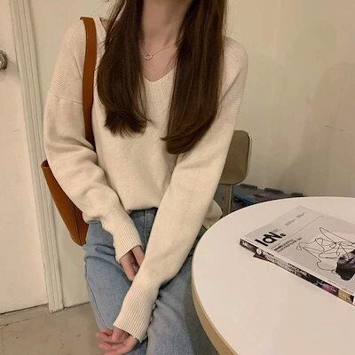 ニット ニットセーター レディース 長袖 秋 冬 Vネック ドロップショルダー 無地 シンプル ニットソー 柔らかい 防寒 カジュアル オシャレ 大きいサイズ 袖長い インナー コーデ