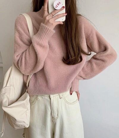 モヘア ニット セーター レディース 長袖 秋冬 ハイネックニット ふわふわ 暖かい ゆったり ハイゲージニット タートルネック リブ 無地 秋物 トップス ドロップショルダー モヘアニット カジュア