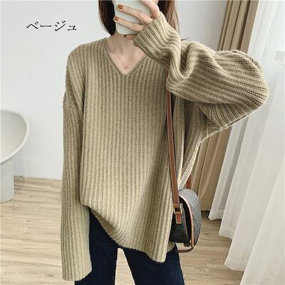 ニット セーター 長袖 秋 冬 レディース ニットプルオーバー Vネック ドロップショルダー リブニット リブ編み ニットトップス 長袖ニット ニットソー レディースニット ワイドリブ ゆったり 落ち