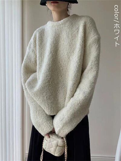 ニットプルオーバー ふわふわ レディース 秋冬 トップス ニット セーター 大きいサイズ 起毛 ドロップショルダー 長袖 無地 クルーネック ふわモコ ゆったり プルオーバー ゆるニット 長袖 秋服