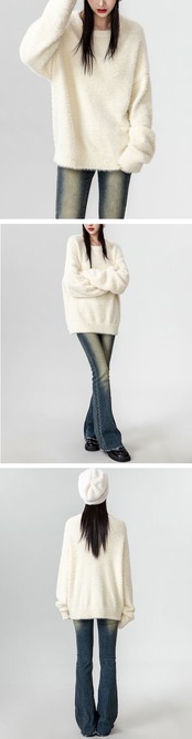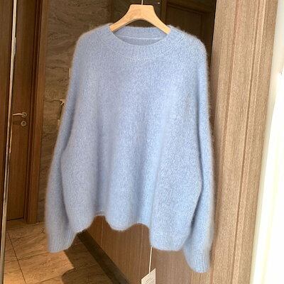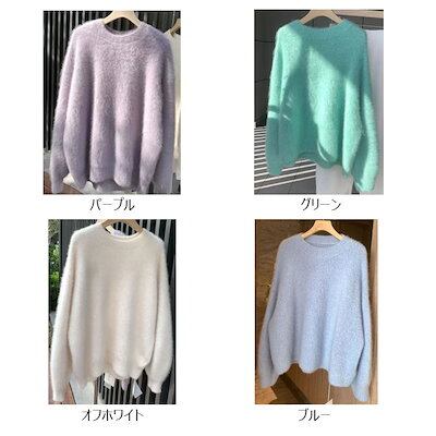 ニットセーター レディース シャギーニット セーター ニット 秋冬 長袖 長袖セーター クルーネック プルオーバー ニットソー インナー 秋 冬 ショート シャギー 無地 ふわふわ カジュアル もこも