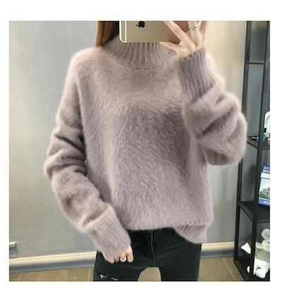 シャギー ニット セーター 冬 レディース きれいめ トップス ニットトップス プルオーバー シャギーニット 長袖 起毛 ハイネック プチハイネック リブ ニットセーター 体型カバー ゆったり もこも