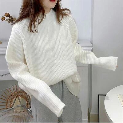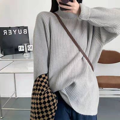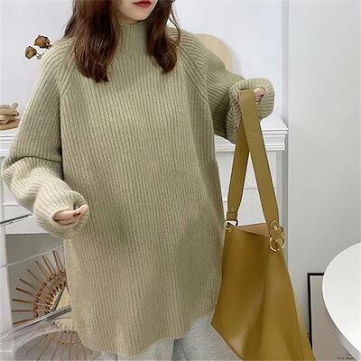 リブニット ニット レディース セーター トップス 長袖 プチハイネック シンプル プルオーバー リブ ハイネック タートルネック 長袖セーター 長そで ニットトップス ロング丈 フレンチスリーブ 秋