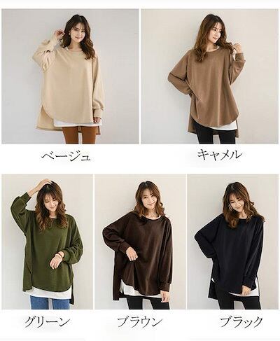ニットセーター 秋冬 カットソー 長袖 レディース トップス 秋 かわいい 服 秋物 ニット 長袖ニット スリット 前後差 ラウンドヘム 長袖セーター フレンチスリーブ ニットソー ドルマン ハイケー