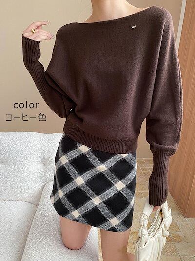 ボートネック ニット レディース 春 秋冬 長袖 リブニット ボリューム袖 ボリュームスリーブ 大人 長そで きれいめ 華奢見え ドルマン 体型カバー トップス セーター 柔らかい 無地 洗えるニット