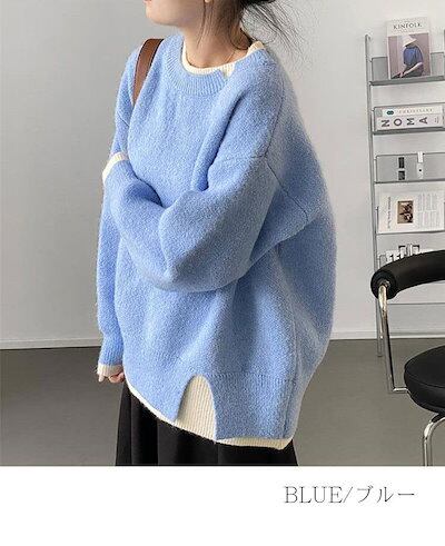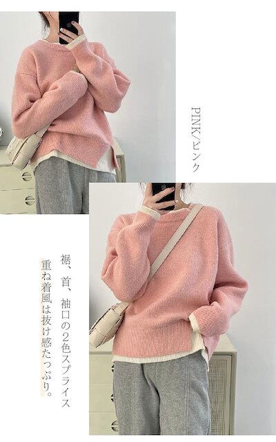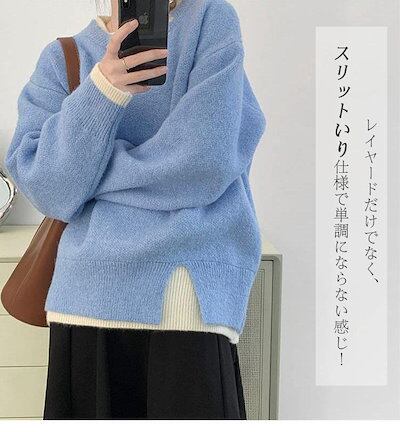 ニット トップス レディース レイヤード風 セーター プルオーバー クルーネック ニットトップス ニットトップ オーバーサイズ ドロップショルダー リブニット リブ おしゃれ 重ね着 丸首 長袖 秋冬