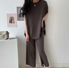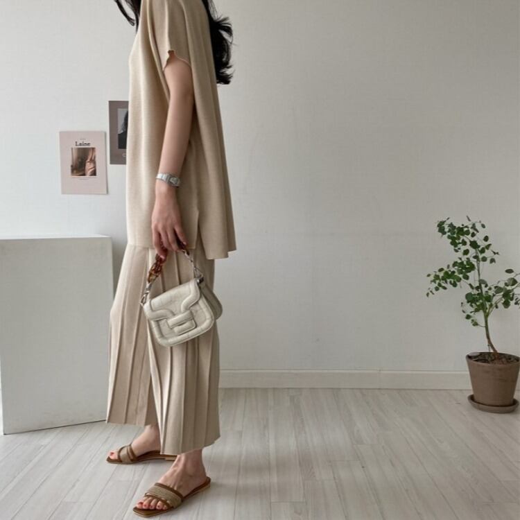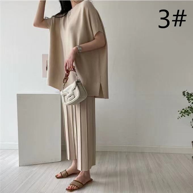 2022春夏新作 カットソー ワイドズボン 2点セットアップ 9分丈パンツ 韓国風 レディース カジュアル 上品