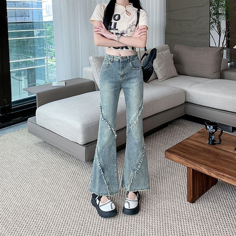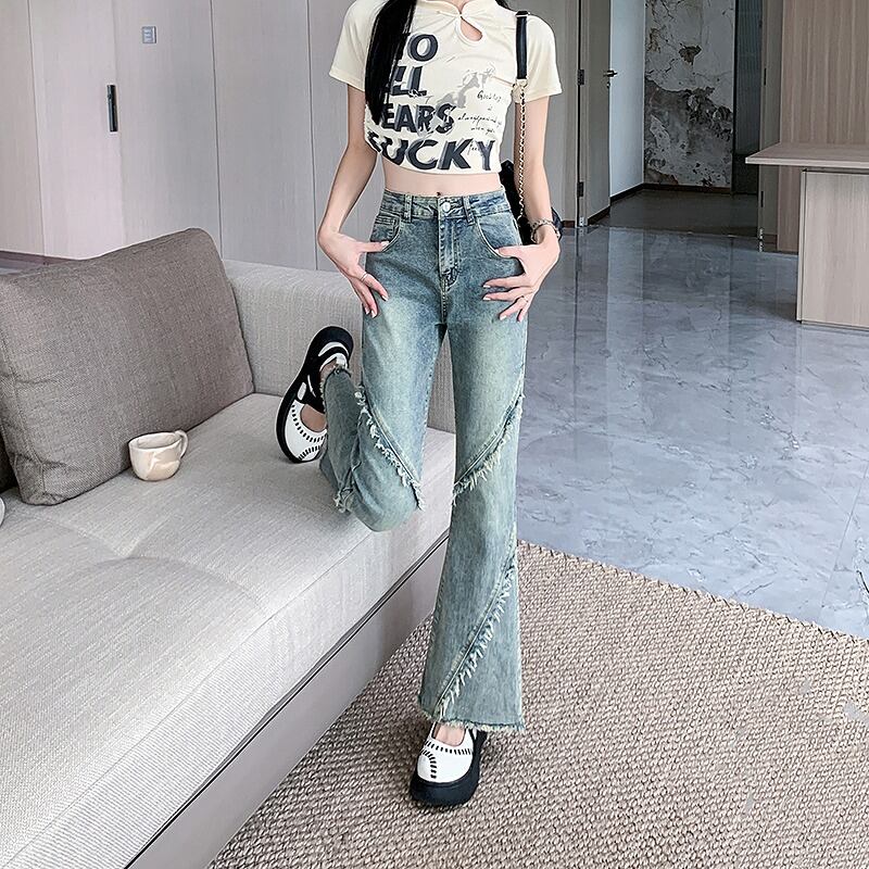 Gパン ジーパン ジーンズ 切り替え スリム 着痩せ デニム シンプル
