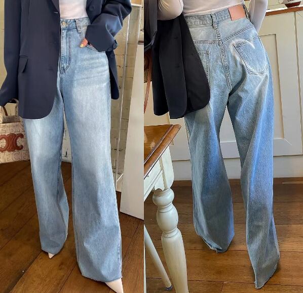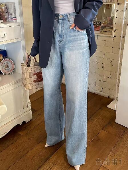 Gパン ジーパン ジーンズ プリント 切り替え 体型カバー 着痩せ デニム シンプル