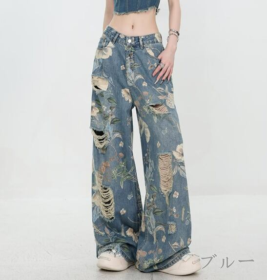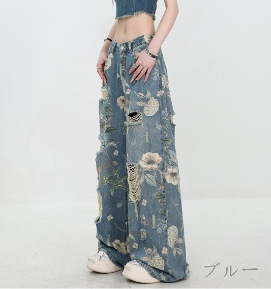 Gパン ジーパン ジーンズ プリント 切り替え 体型カバー 着痩せ デニム 【大きいサイズあり】