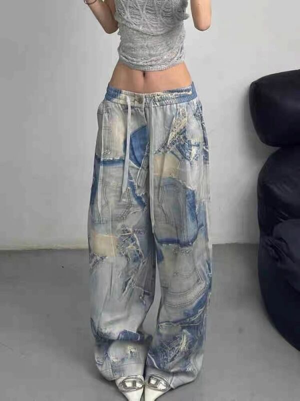 Gパン ジーパン ジーンズ 切り替え バイカラー プリント 体型カバー 着痩せ デニム 【大きいサイズあり】