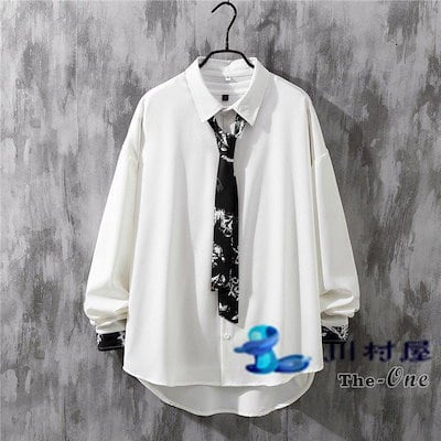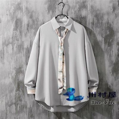 長袖シャツ メンズ レディース カジュアルシャツ ネクタイ付き ドロップショルダー おしゃれ シャツ 春服 韓国ファッション