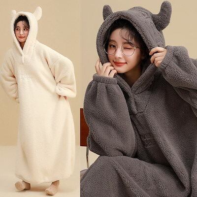春冬 パジャマ レディース 可愛い 小悪魔 ネグリジェ 大きいサイズ 体型カバー? ゆったりルー ムウェア 快適 厚手 裹起毛 暖かい 寝巻き 部屋着