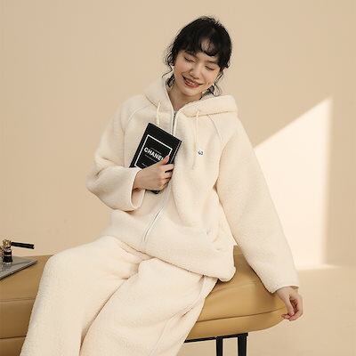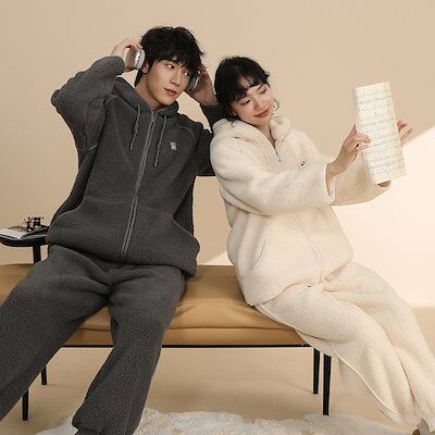 新作 春冬 カップルパジャマ コーラルフリース パジャマ レディース 厚手 裹起毛 保温 ルー ムウェア セットアップ 日系 シンプル 快適 寝巻き 部屋着 メンズ パジャマ 外着