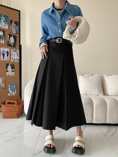 スカート レディース プリーツスカート ギャザースカート ボトムス ロングスカートロング丈 プリーツ ギャザー 春 秋 秋服 Aライン 体型カバー 着痩せ 通勤 OL 無地 大きいサイズ おしゃれ シ