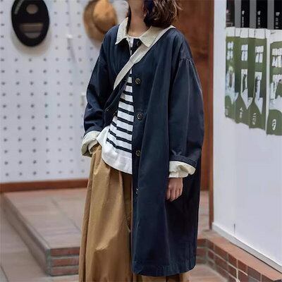 トレンチコート レディース スプリングコート ロングコート 配色 ポケット ステンカラー 春物 春服 ゆったり コットン ロング 秋 春 長袖 春コート おしゃれ カジュアル 体型カバー 通勤 OL