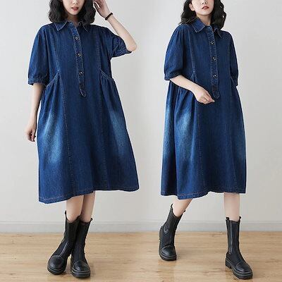 デニムワンピース シャツワンピース ジーンズ ロング丈 ワンピース レディース デニムシャツ 春服 2025福袋