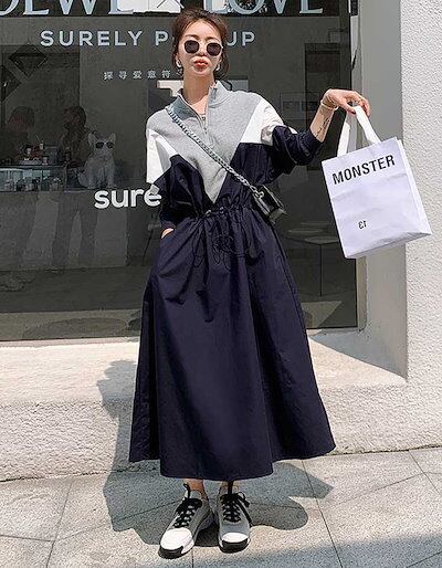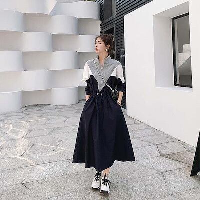 膝下 大きいサイズ 可愛い 秋冬 体型カバー通勤 大人 春 レディース マタニティワンピース 大きめ ロング丈 リラックス 上品 ワンピ ひざ下 ワンピース 長袖 ルームウェア