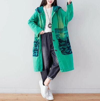 デニムコートトレンチコート スプリングコート レディース ロングコート フード付き トレンチ ロング 春物 春服 ロング丈 春トレンチ コート アウター マウンテンコート 大きいサイズ カジュアル 大