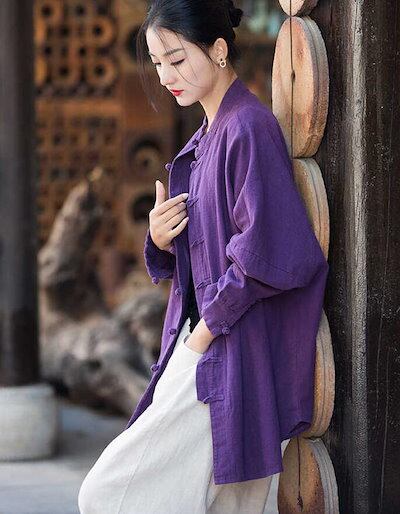 スプリングコート 綿麻 レディース ライトアウター 長袖 コート アウター カーディガン 春物 春服 コート アウター マウンテン コート コットンリネン チャイナボタン コットン リネン 大きいサイ