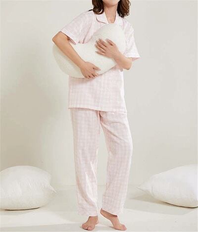 チェック ガーゼ パジャマ レディース ダブルガーゼ ドット ルームウェア 春 夏 秋 冬 長袖 半袖 ロングパンツ 部屋着 セットアップ 2点セット 寝間着 寝巻き 上下セット 前開き 大きいサイズ