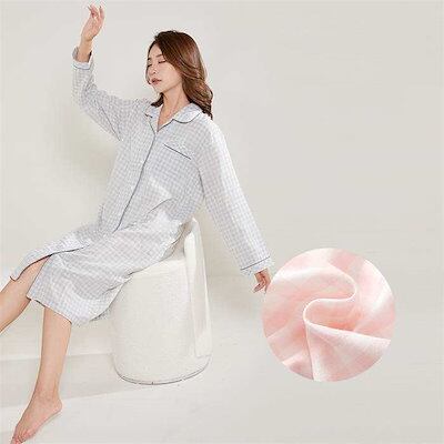ダブルガーゼ ルームウェア 部屋着 ワンピース チェック パジャマ レディース 春 秋 綿 前開き ガーゼ 2重ガーゼ ロング ロングワンピース 長袖 大人 寝巻き ナイトウェア ゆったり コットン
