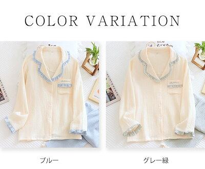 上下配色 ガーゼ パジャマ レディース ルームウェア 長袖 部屋着 セットアップ 2点セット ガーゼ 綿100% フリル コットン 大人 寝巻き ナイトウェア ゆったり 上下セット 春 秋 冬 ウエス