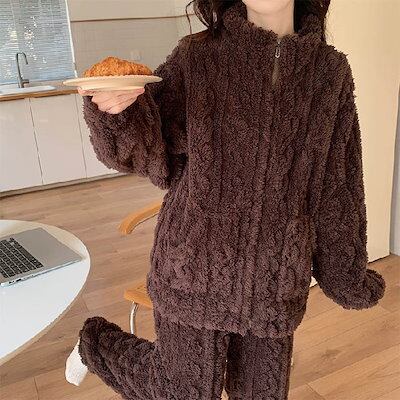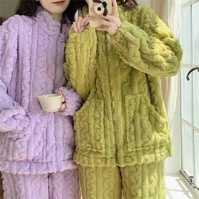 もこもこ パジャマ レディース ルームウェア パンツ 秋冬 ベロアパジャマ ベロア 厚手 春 秋冬 切り替え 長袖 2点セット ナイト 寝間着 寝巻き 上下セット 前開き 寒さ対策 快適 ゆる 大人