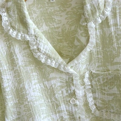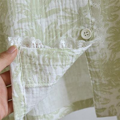 ガーゼ パジャマ レディース 花柄 総柄 ルームウェア 春 秋 冬 長袖 ロングパンツ 部屋着 セットアップ 2点セット 寝間着 寝巻き 上下セット 前開き 大きいサイズ 大人 レース フェミニン 折