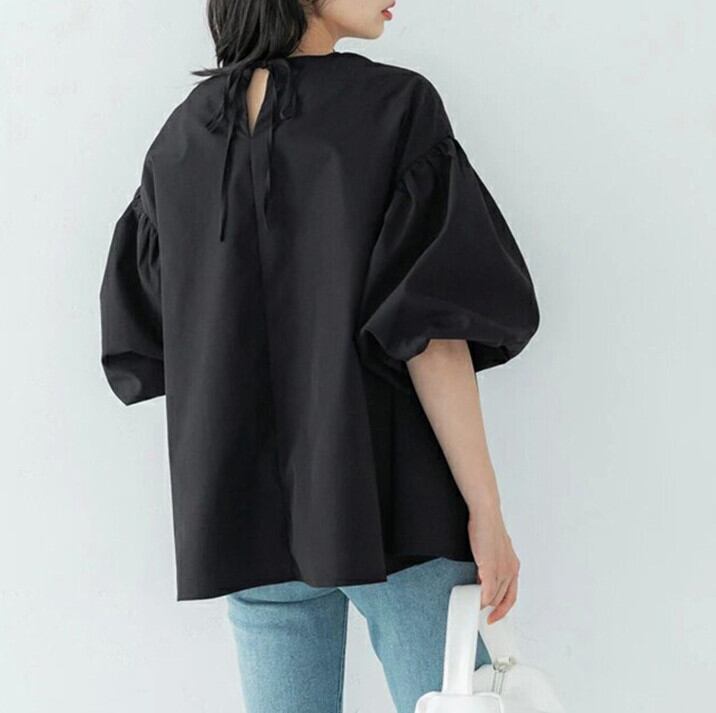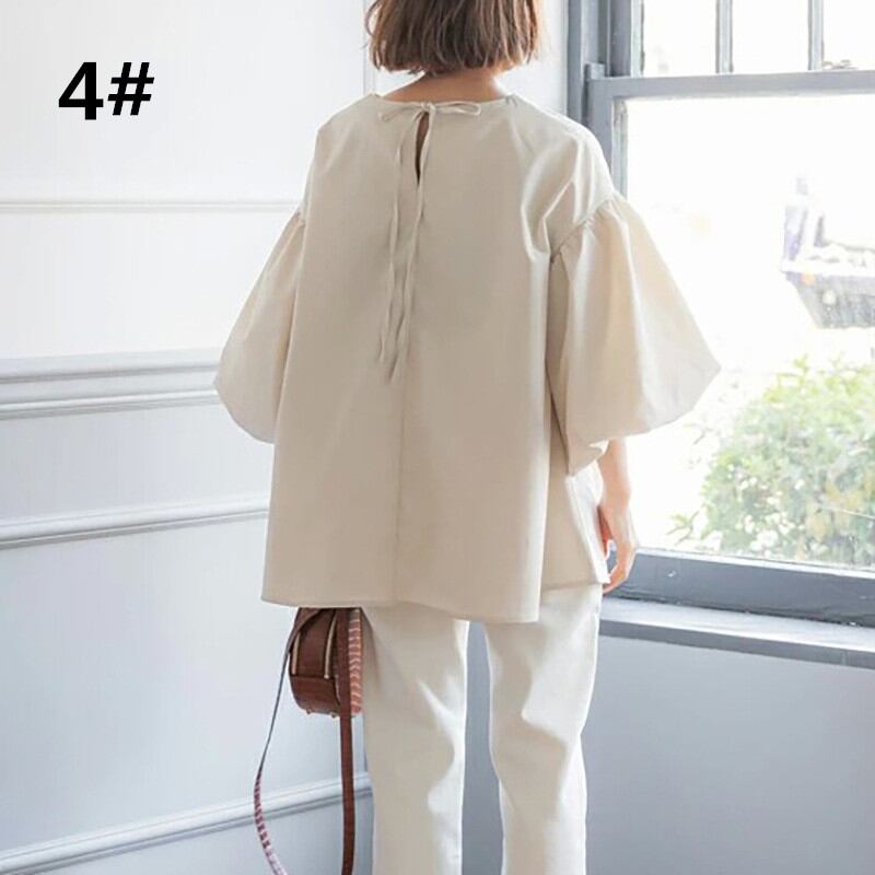 2025年春夏新作 ブラウス トップス レディース 長袖シャツ ランタンスリープ ラウンドネック