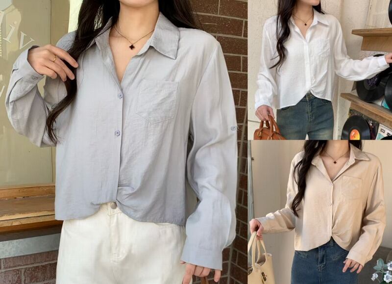 全5色 長袖シャツ 切り替え 体型カバー 着痩せ シンプル