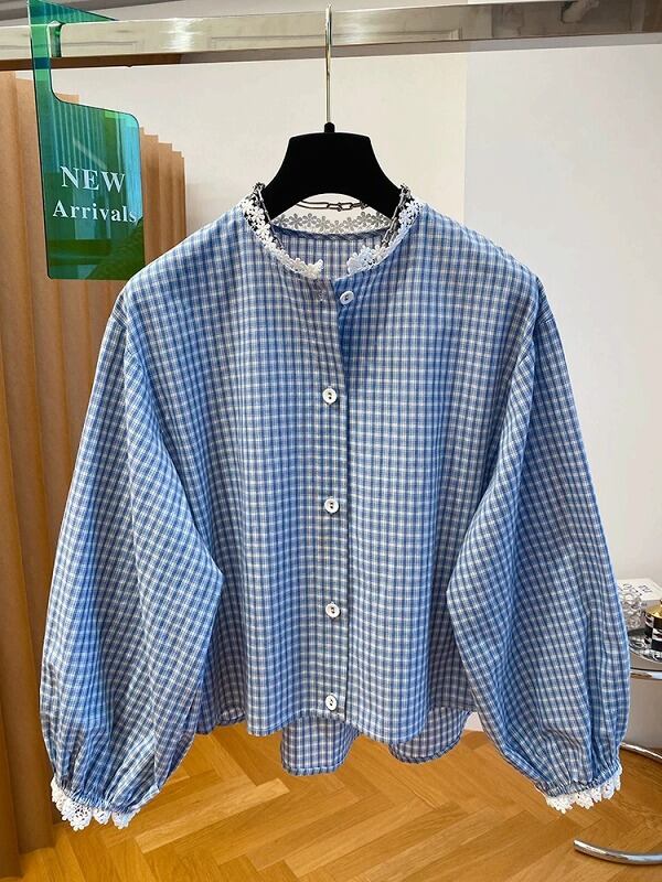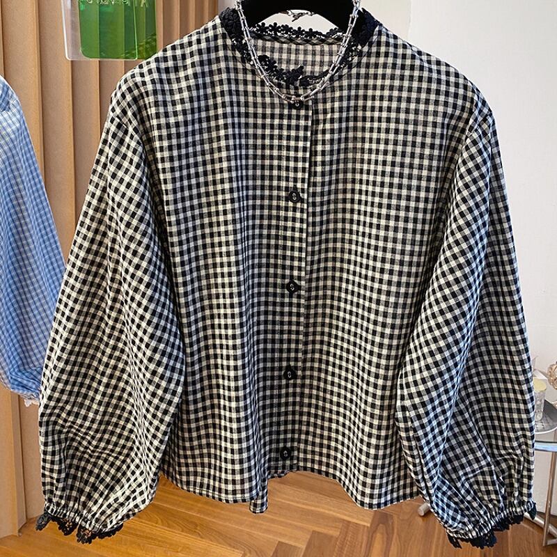 全2色 長袖シャツ 切り替え バイカラー 体型カバー 着痩せ チェック柄 カジュアル
