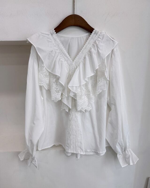 全2色 長袖シャツ フリル 切り替え 体型カバー 着痩せ sweet系