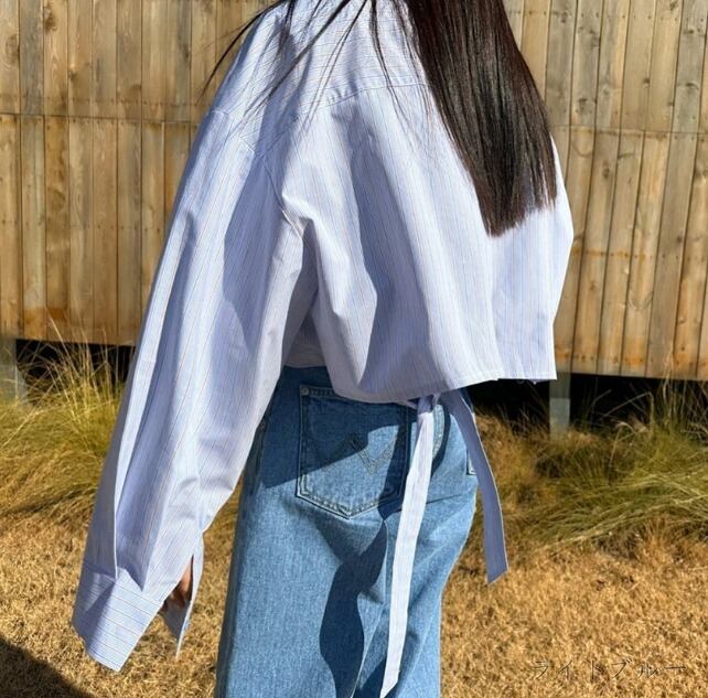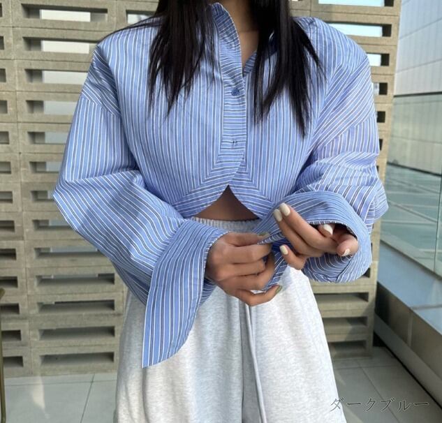 全2色 長袖シャツ ショット丈 切り替え 体型カバー 着痩せ シンプル