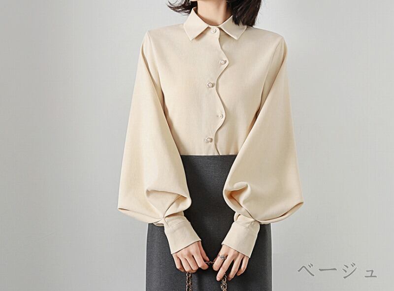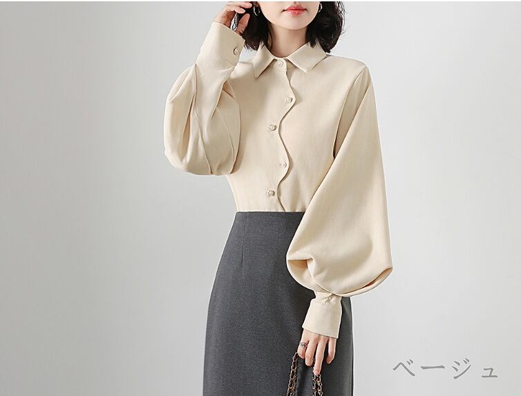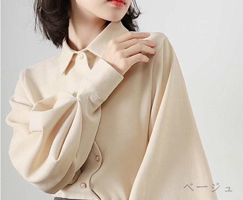 長袖シャツ ボリューム袖 切り替え 体型カバー 着痩せ シンプル