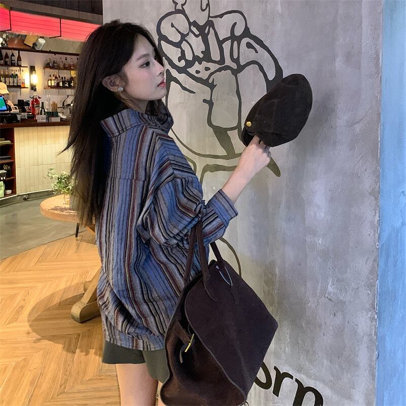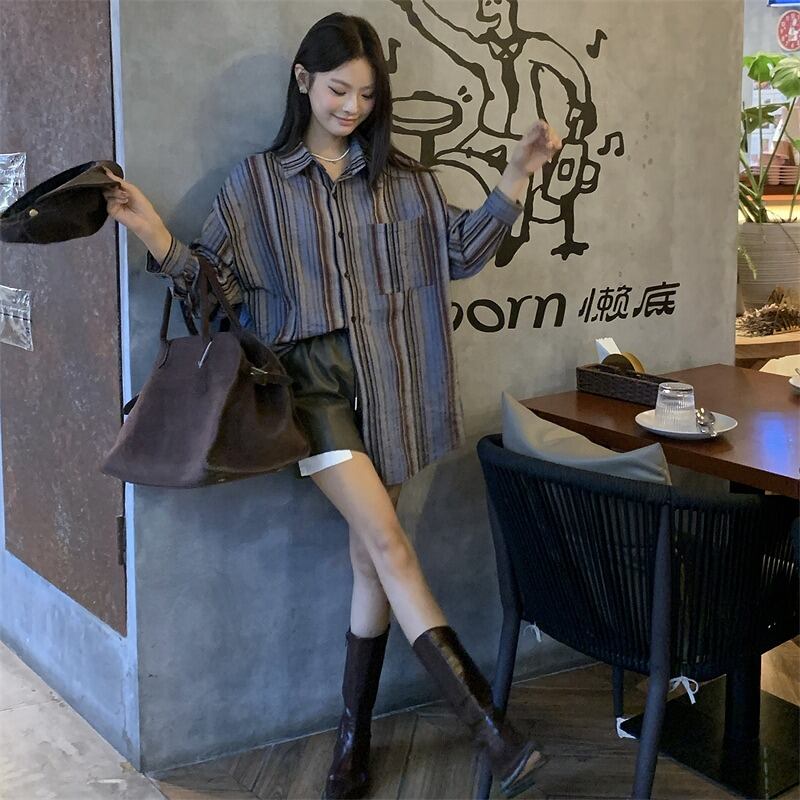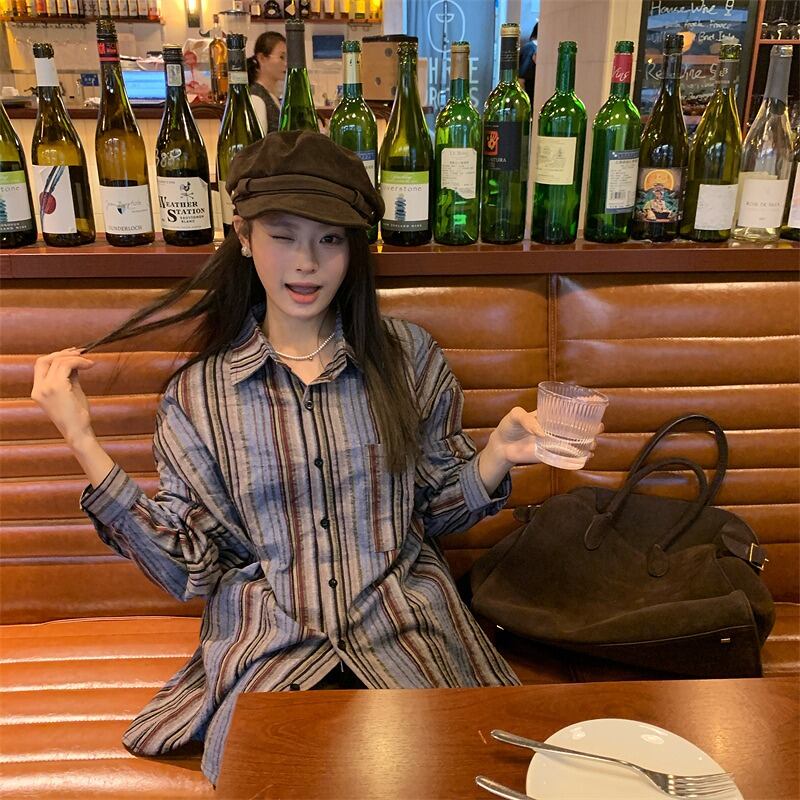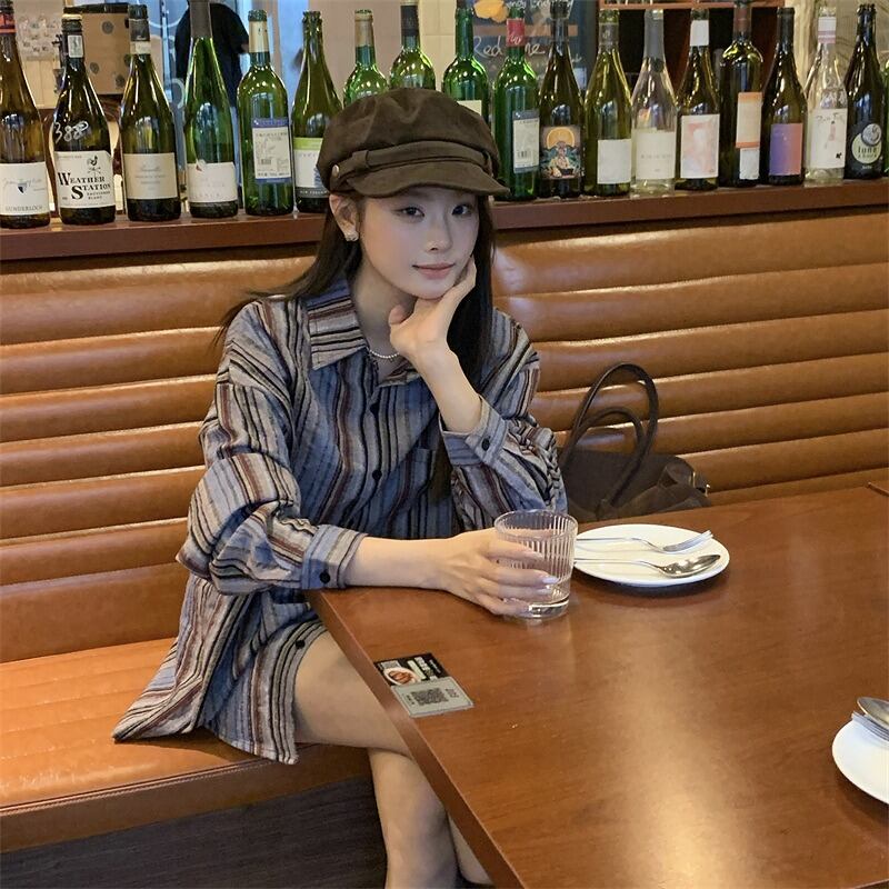 長袖シャツ 切り替え バイカラー 体型カバー 着痩せ ストライプ柄 カジュアル