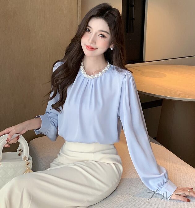 全2色 長袖シャツ シャーリング 切り替え 体型カバー 着痩せ 【大きいサイズあり】