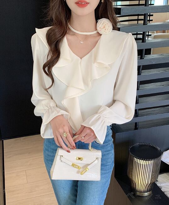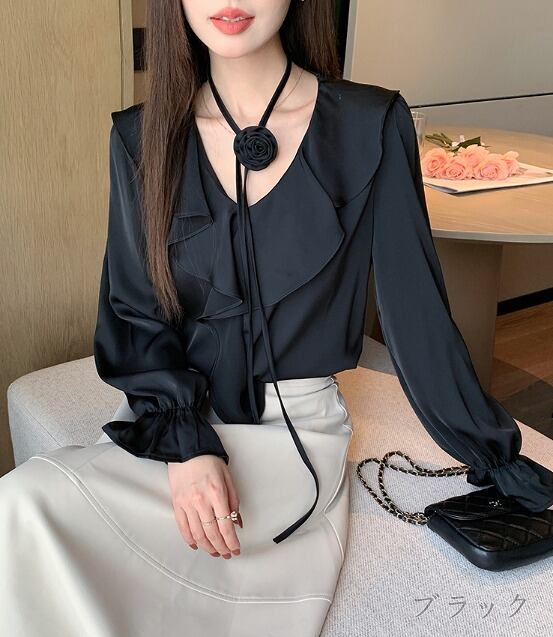 全3色 長袖シャツ フリル 切り替え 体型カバー 着痩せ 【大きいサイズあり】 sweet系