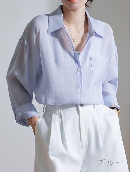 全2色 長袖シャツ 日焼け止め 切り替え 体型カバー 着痩せ カジュアル