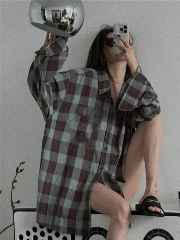 長袖シャツ 日焼け止め 切り替え バイカラー 体型カバー 着痩せ チェック柄 シンプル カジュアル