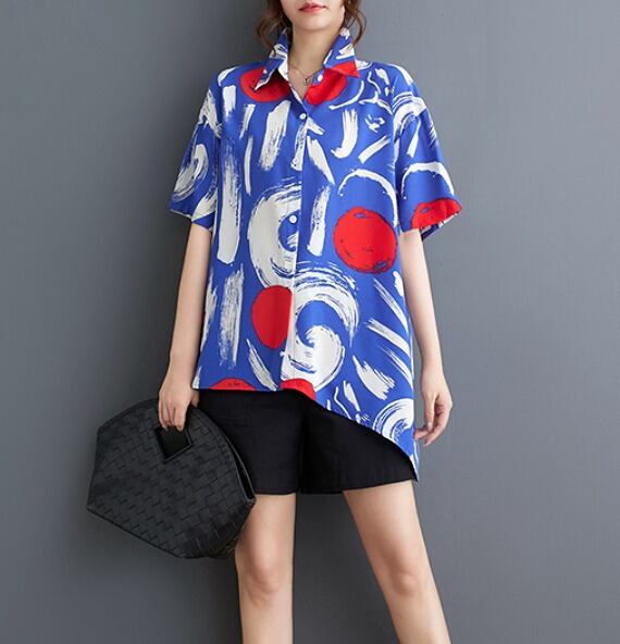 半袖シャツ プリント 切り替え バイカラー 体型カバー 着痩せ シンプル