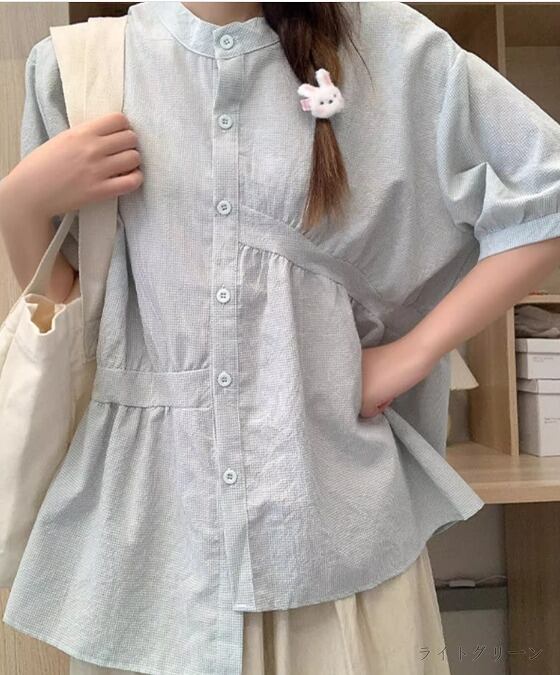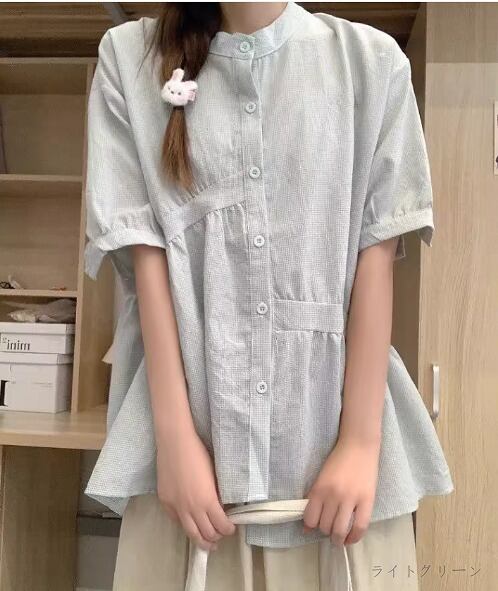 半袖シャツ アシンメトリー ボリューム袖 切り替え 体型カバー 着痩せ sweet系