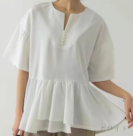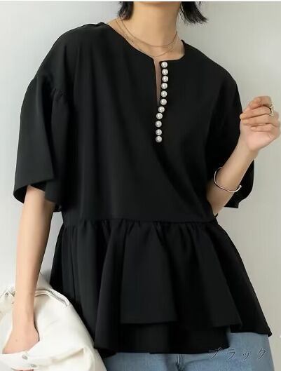 全2色 半袖シャツ アシンメトリー フリル 切り替え 体型カバー 着痩せ シンプル