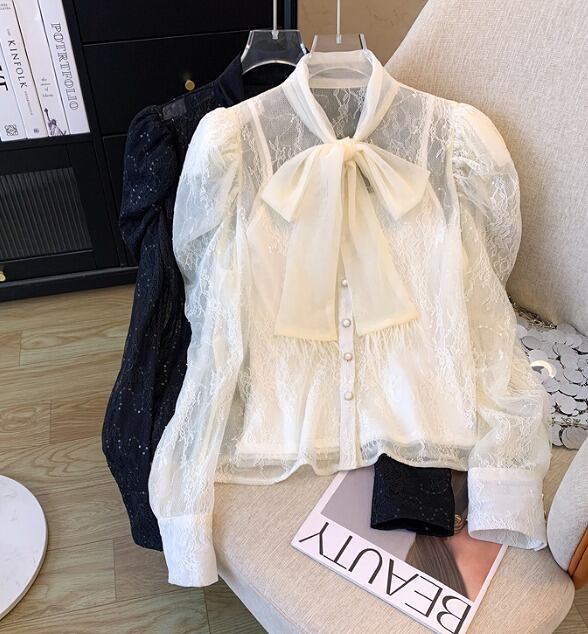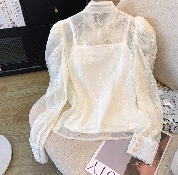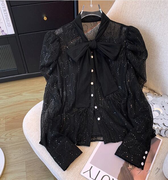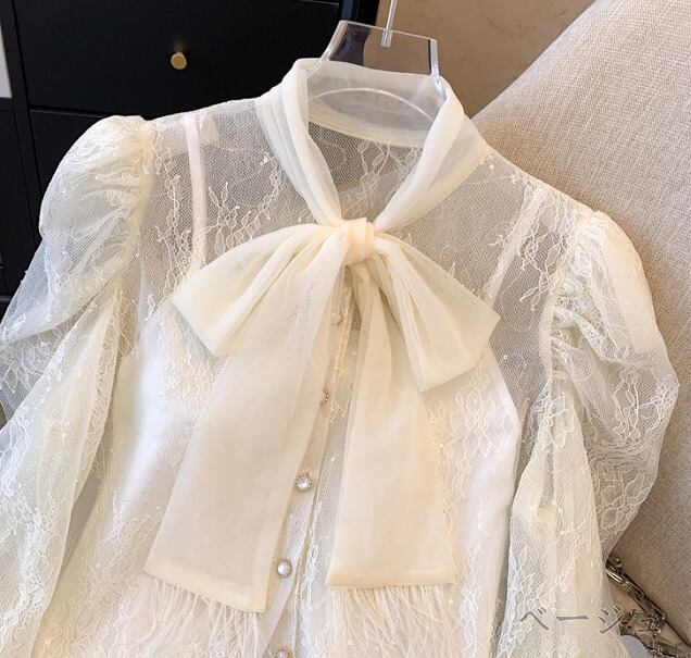 全2色 長袖シャツ 2点セット 切り替え 体型カバー 着痩せ レース sweet系