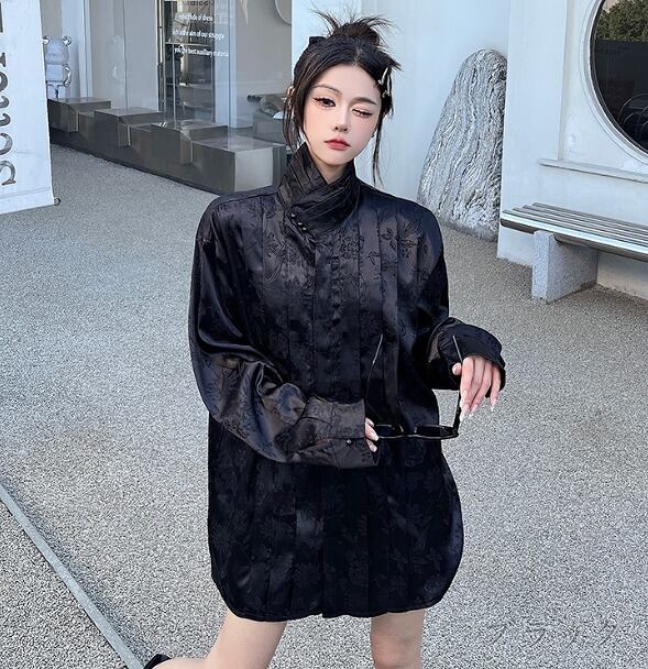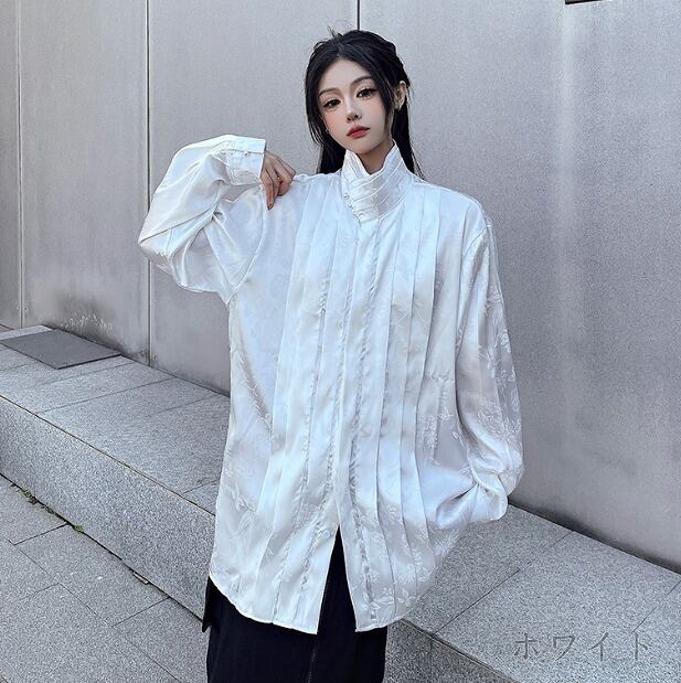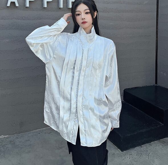 全2色 長袖シャツ 切り替え 体型カバー 着痩せ カジュアル